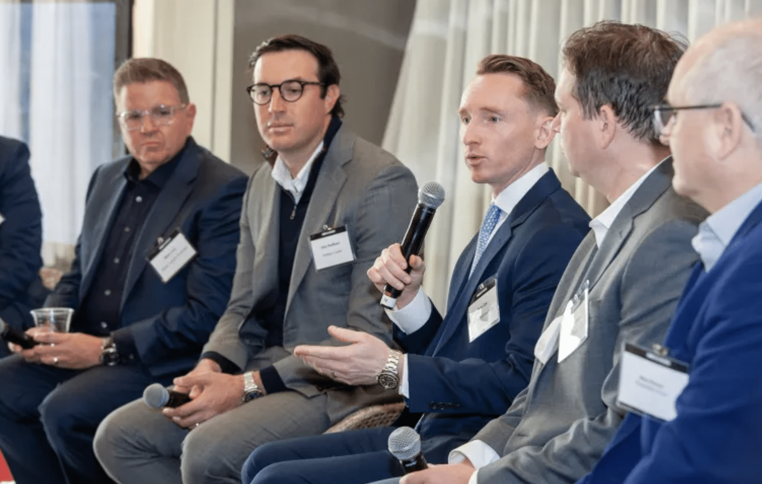 The speakers for the first session were Tom Griggs, a managing director at owner Hines; Alex Redfearn founder, president and CEO of Redfearn Capital; Peter Zuk, head of asset management for North American industrial at Oxford Properties Group; Mark Levy, president of Altman Logistics Properties; Mark Shearer, senior managing director at owner Rockefeller Group; and David Kupfer, a partner with law firm King & Spalding.
